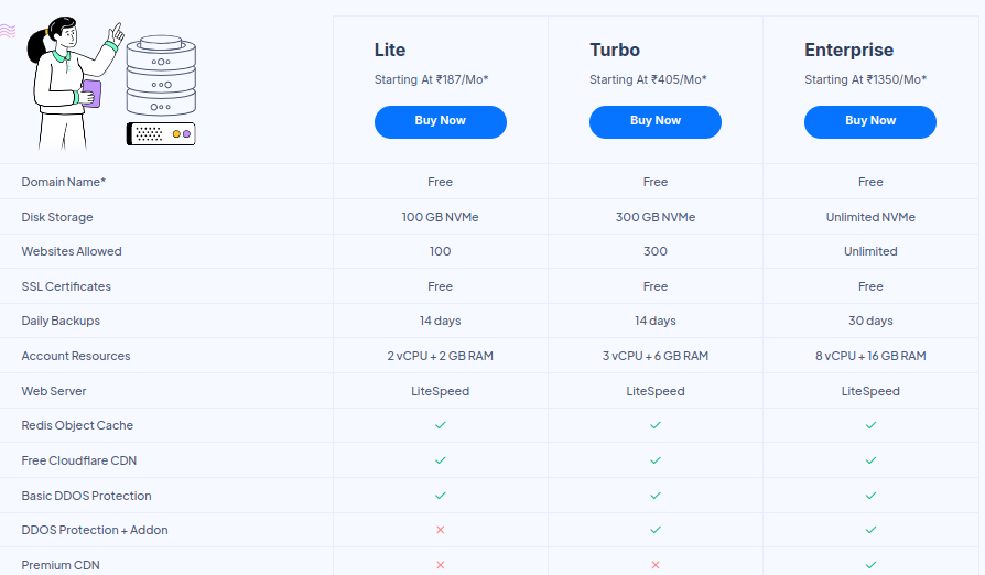 • LiteSpeed servers with SSD/NVMe storage for improved speed.