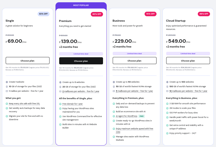 MilesWebIndian host, Hindi/regional support, UPI, free migrationGood for Indian users on a budgetSome features, such as CDN/backups not as strong
